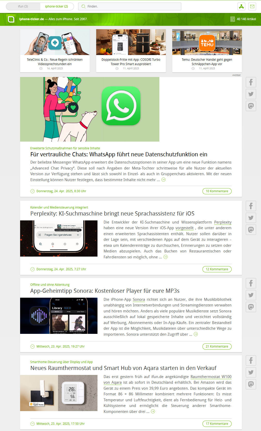 德国科技新闻网站,专注于报道与苹果(Apple)相关的产品、软件更新、行业动态和科技新闻。