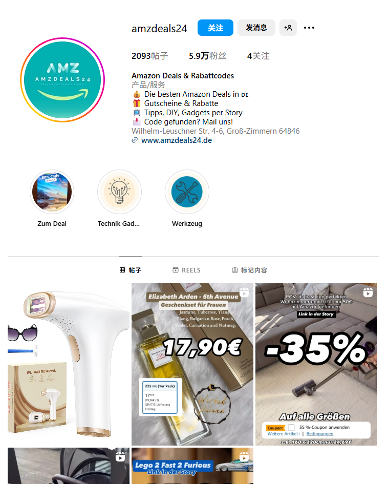 德国Dealbunny网站旗下运营的IG账号,发1个24小时story+1个正帖,流量还可以,条件要求不严