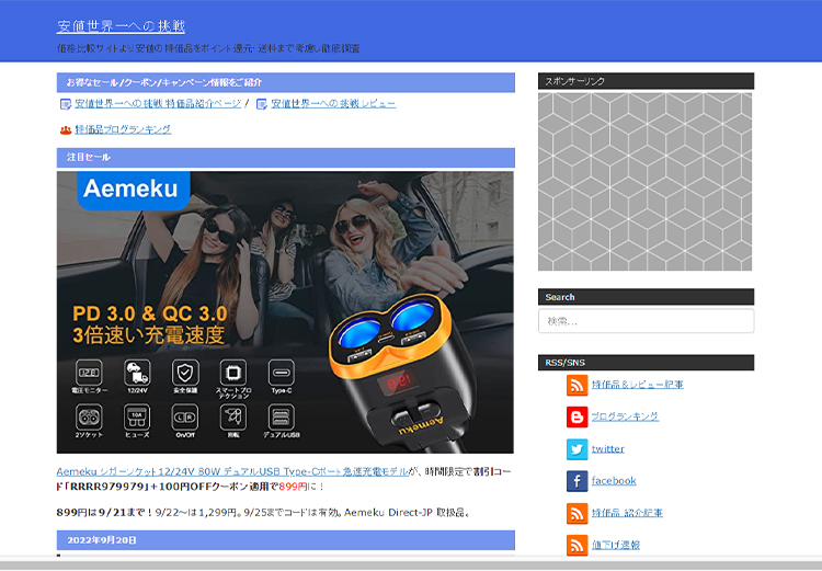 日本流量比较大的折扣网站之一。支持亚马逊+乐天+雅虎+独立站+FMB产品 折扣上贴。最好是3.6分以上的产品。编辑发帖,基本不用选帖,接单后1-2天内上帖。不接成人用品等违禁品,折扣DENDO开头的不支持上贴。
