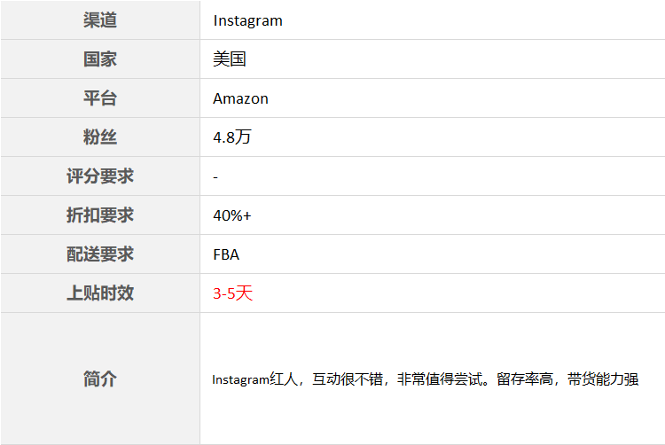 Instagram红人,互动很不错,非常值得尝试。留存率高,带货能力强