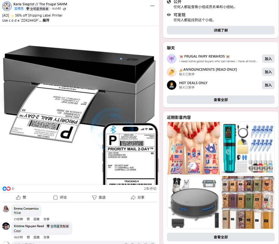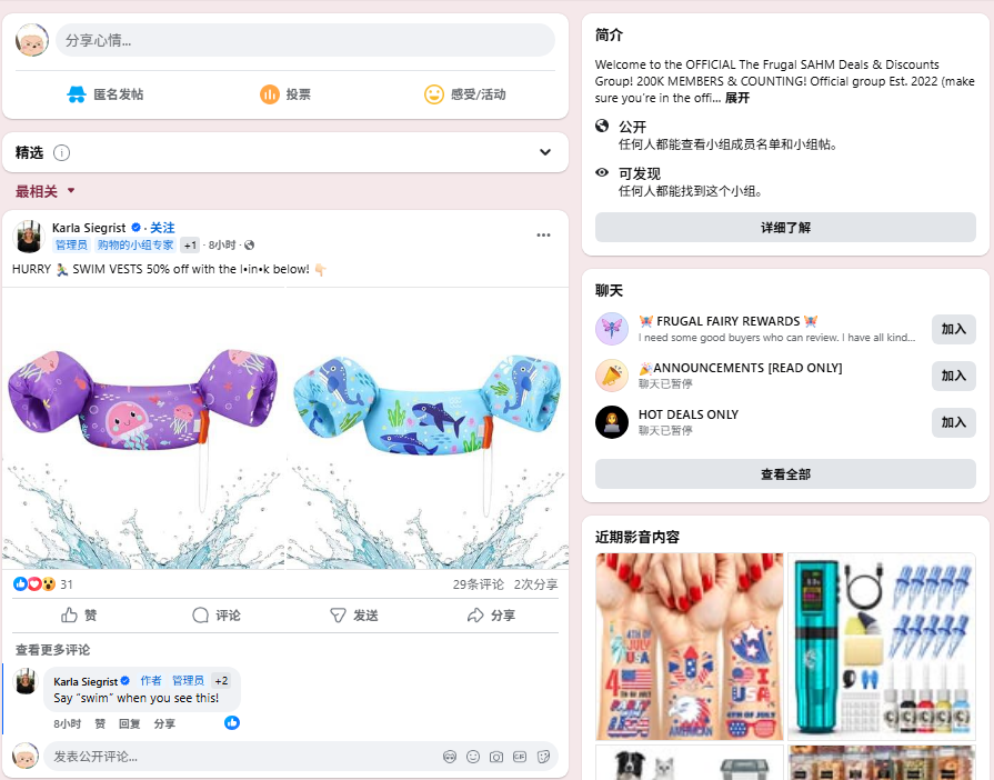 要求:FBA,折扣力≥40%,非常适合母婴/家居类产品,互动率高,出单效果不错,性价比非常好的群组。