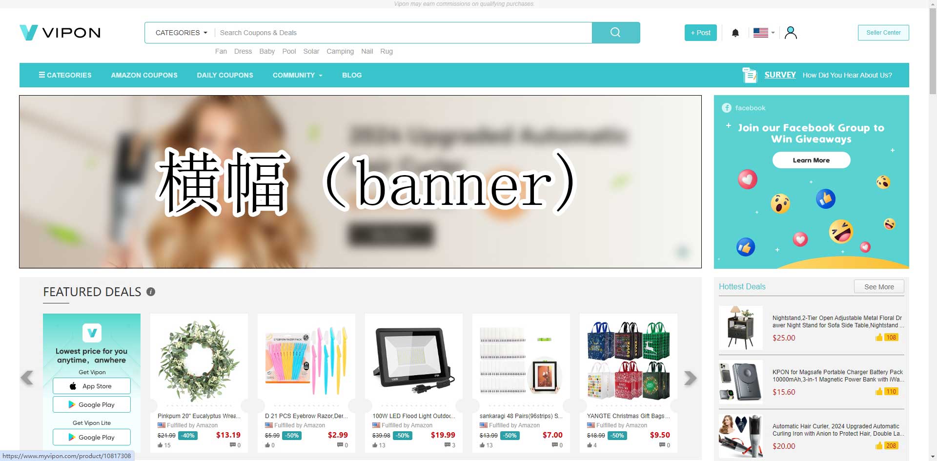 产品将展示在Vipon首页大图轮播区--流量最集中视觉效果最佳位置。