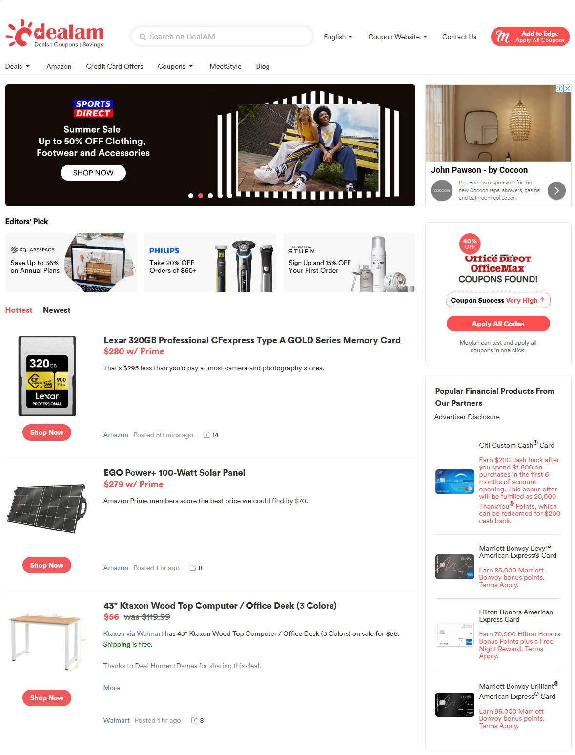 Dealam是一个在美华人大型生活类促销折扣站点,网站喜欢分享家居,美妆,电子,玩具,时尚,庭院类产品促销信息。促销活动由编辑审核并发布促销活动,发布后在首页展示,然后慢慢下沉。该网站月度访问量70万,旺季可超100万访问量