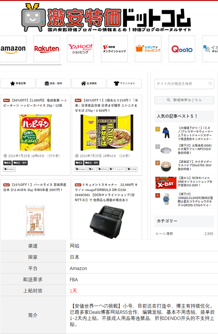 【安値世界一への挑戦】小号,目前还在打造中,博主有持续优化。已跟多家Deals博客网站RSS合作,编辑发帖,基本不用选帖,接单后1-2天内上帖。不接成人用品等违禁品,折扣DENDO开头的不支持上贴。