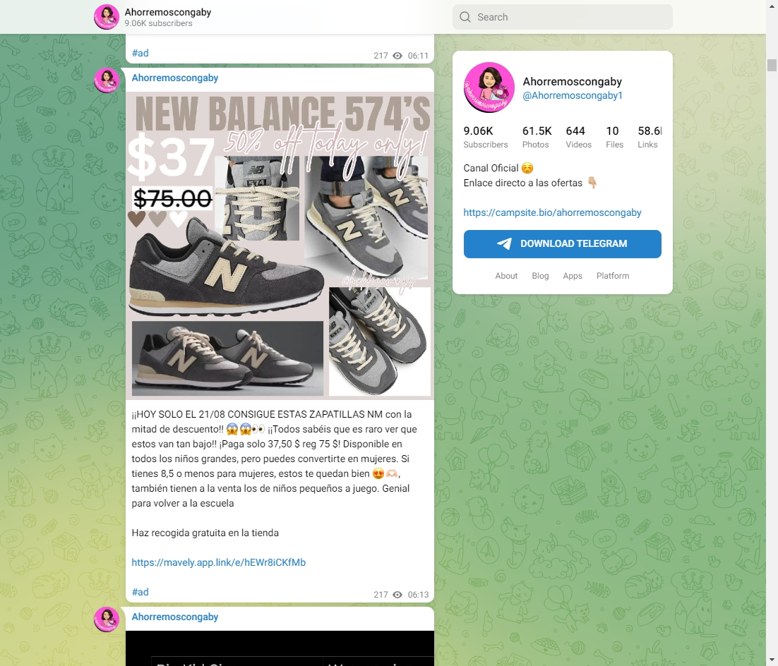Telegram群组面向美国西班牙语用户,非常活跃的优惠购物者,偏好50%及以上的优惠。