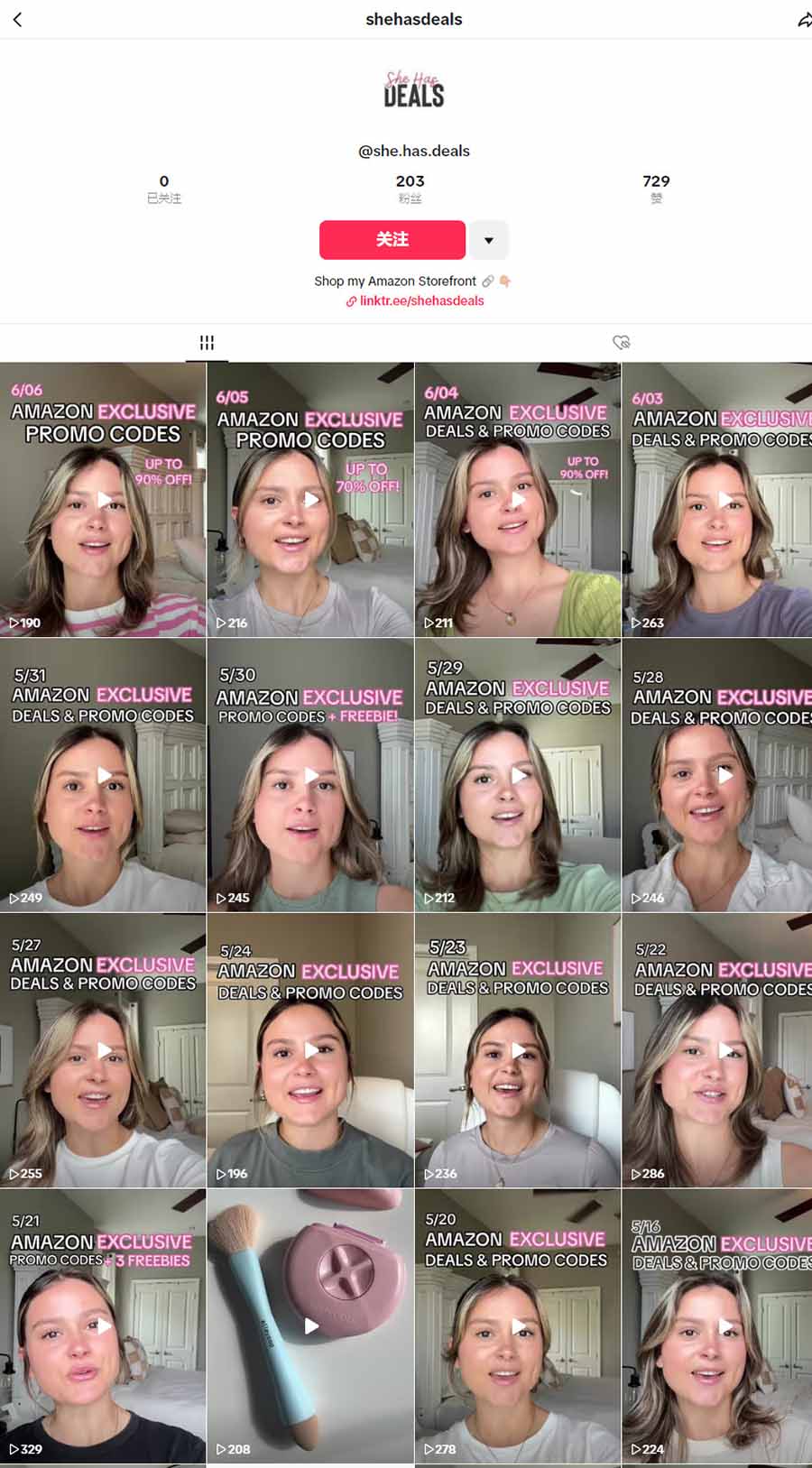 一条视频会推多家产品,介意勿拍!要求:FBA,rating>4.3分,40%off以上,必须有折扣码。同步发布多个社媒,仅反馈单个渠道。
